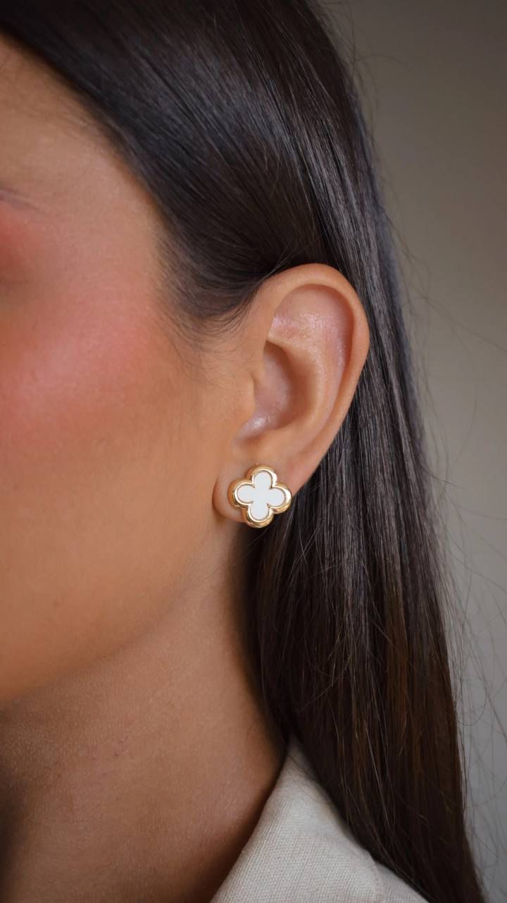 The Fixed Clover Stud Earring with Mother of Pearl is a delicate piece filled with symbolism and soft brilliance. The clover shape represents luck and protection, while the mother of pearl center offers a luminous, natural glow.